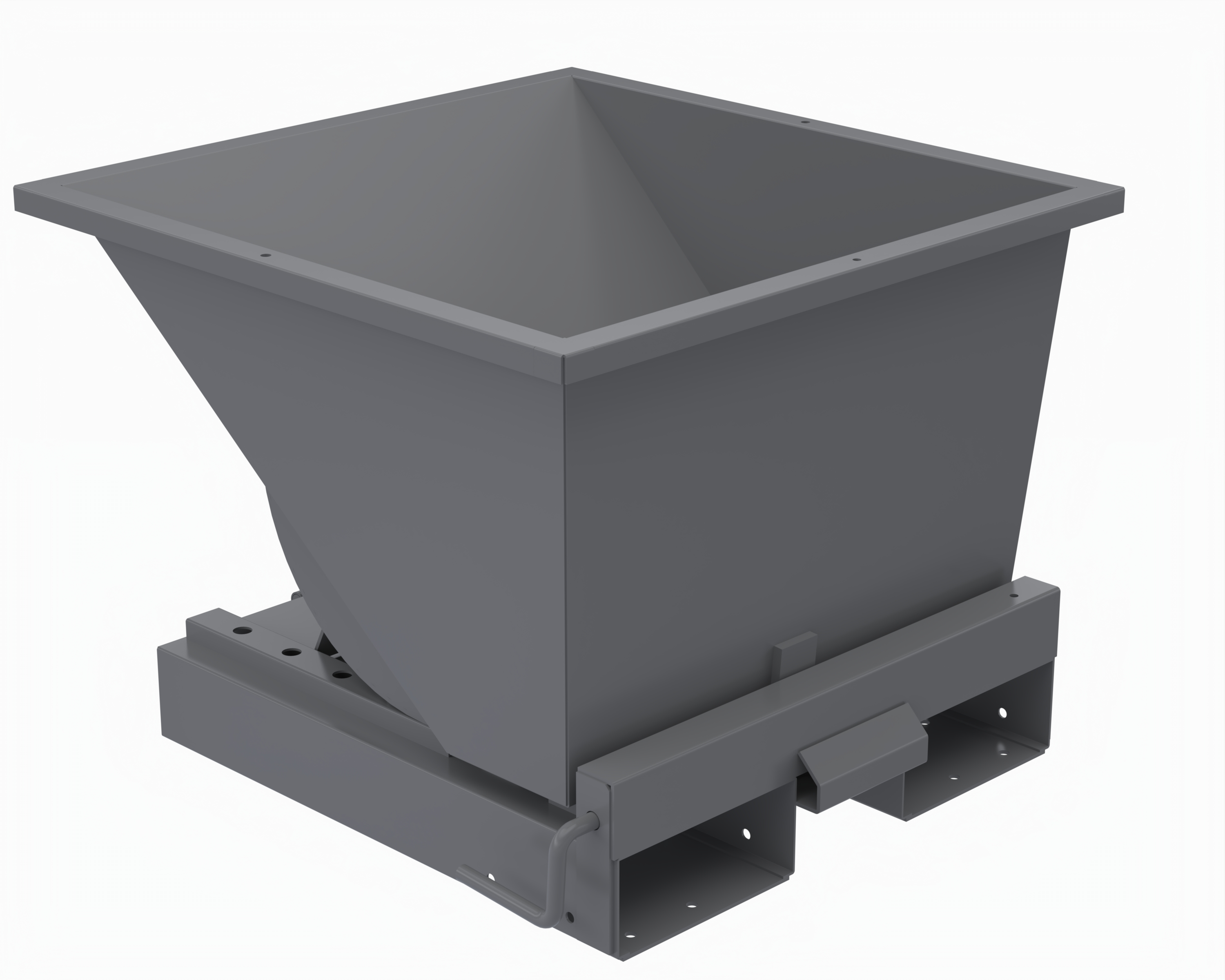 Tippcontainer med automatisk tippfunktion fär säkert arbete. Finns i nio olika modeller, från 150 till 3 000 liter.