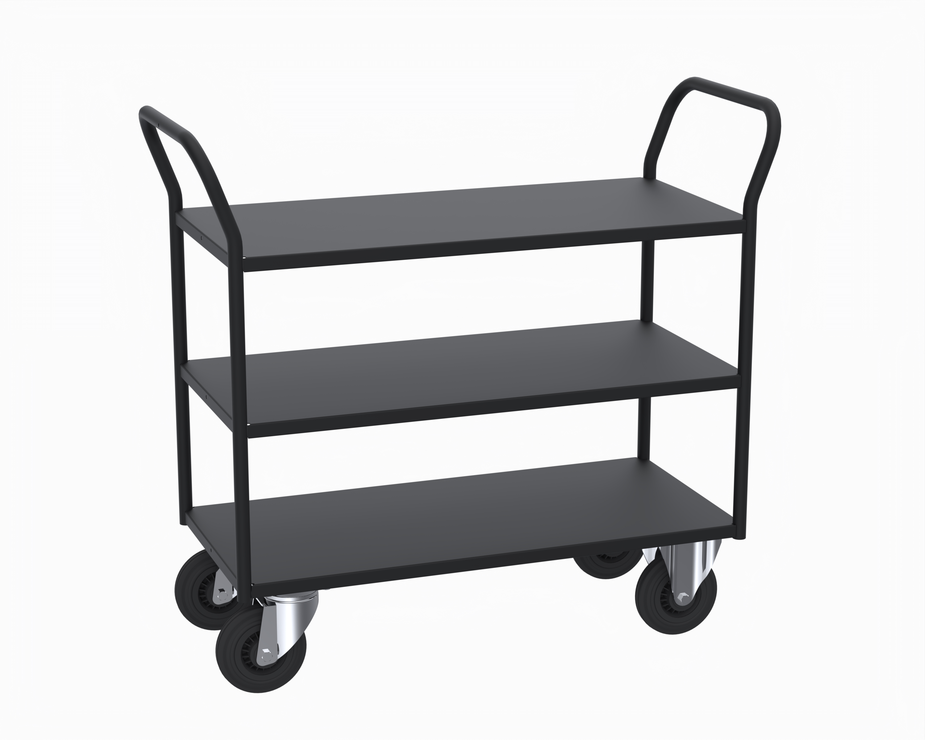 Helsvetsad robust plåtvagn i 3 plan utan kant. Lämpar sig för de tyngre lasterna i de riktigt tuffa miljöerna. Finns som standard i 6 modeller.