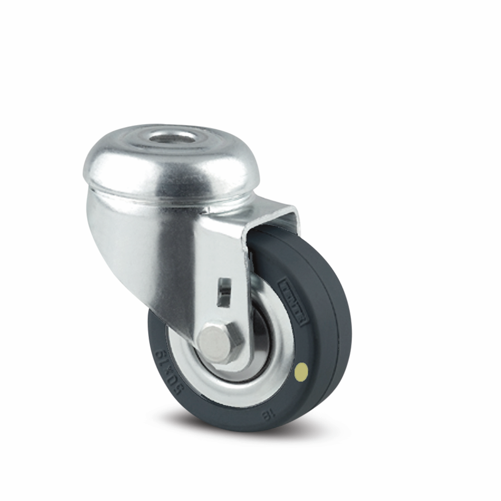 Hjul gjord av pressad stål,Bana: massiv gummi, svart, non-marking,conductive godkända med trådskydd, konkullager