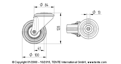 Hjuldiameter 100mmBanbredd 36mmCentrumbult 13mmBygghöjd 128mm