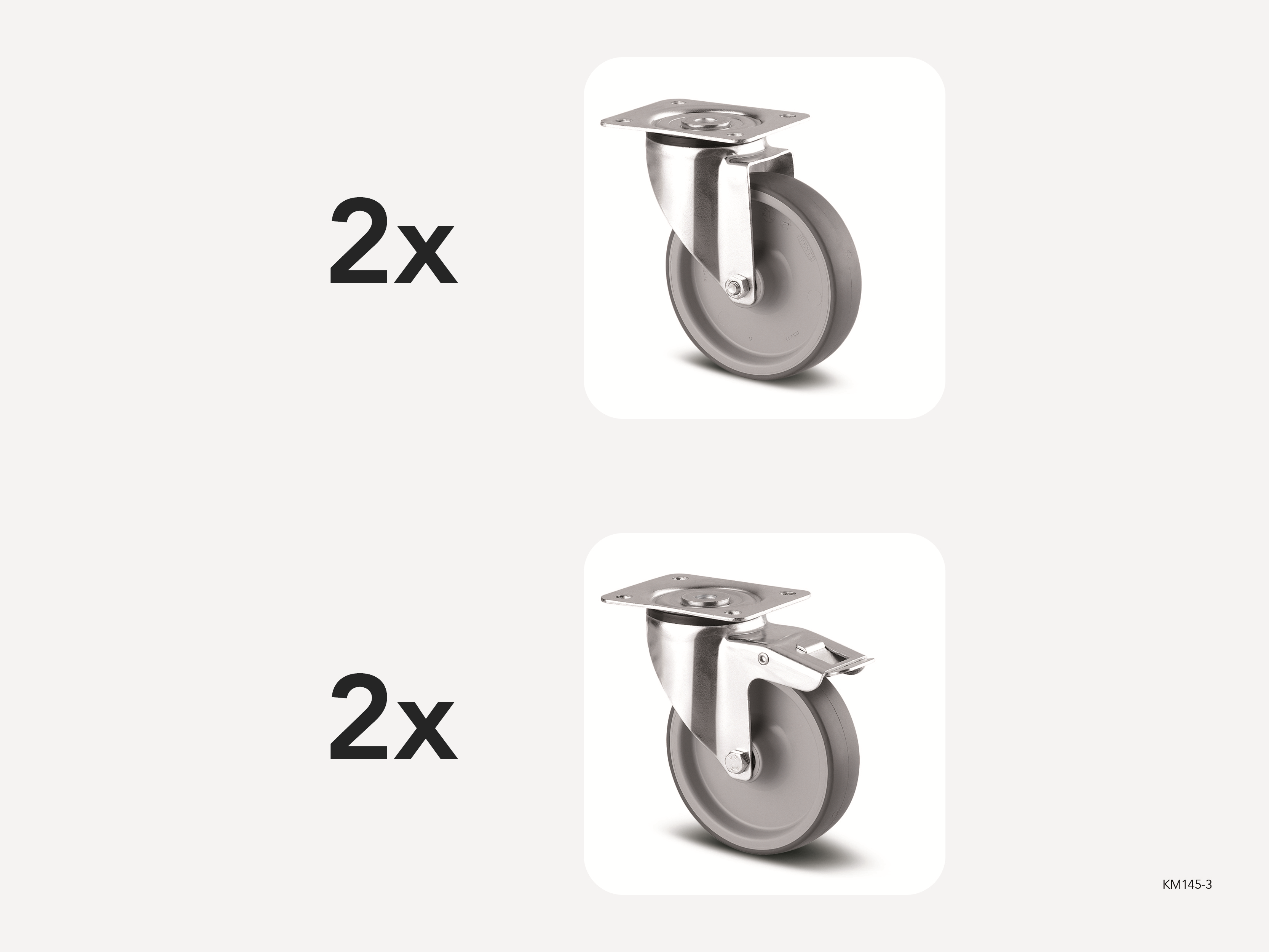 Termogummihjul, 2 länk och 2 bromsade, 200 mm