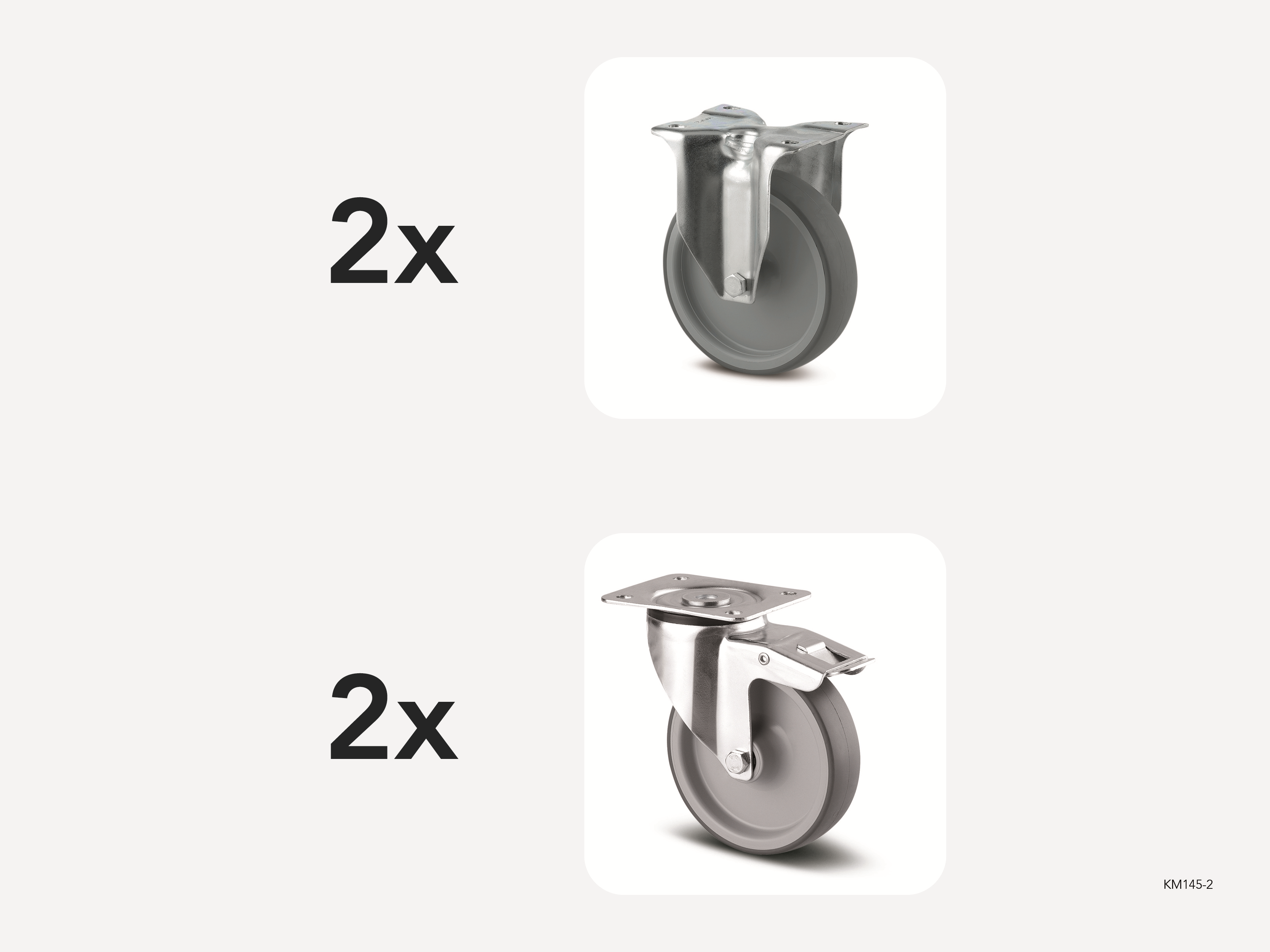 Termogummihjul, 2 fasta och 2 bromsade, 200 mm